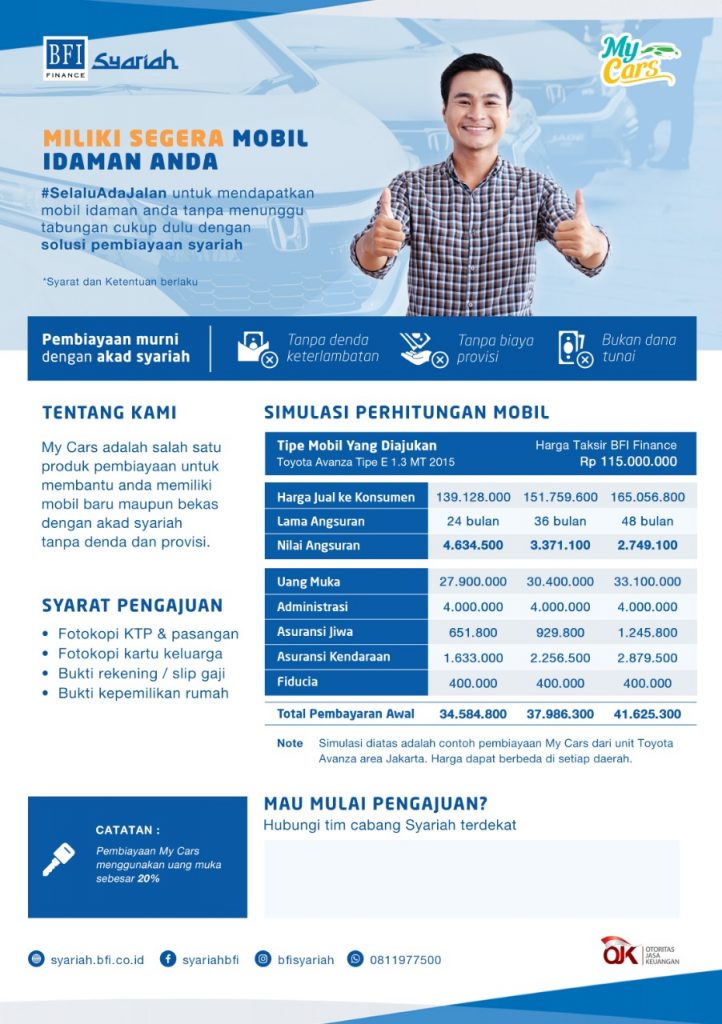 Toyota avanza limited dijual hanya 150 unit di giias 2017. Warga negara indonesia (wni) tidak masuk dalam daftar bad debt/negative list appi dan/atau mpm finance. Dimana sebagian besar dari angsuran adira memiliki tujuan khusus seperti pembelian kendaraan bermotor ataupun barang elektronik. Wom finance altira office tower, jl. Sebagai salah satu pemilik pangsa pasar finance terbesar di dalam negeri, adira tak lagi asing di telinga masyarakat indonesia. Namun, yang perlu digaris bawahi, setiap harga mobil toyota avanza kredit tersebut bisa berubah tergantung lokasi pembelian, kamis (23/7/2020). Untuk hal tersebut, bfi finance telah melakukan kerja sama dengan minimarket ternama seperti alfamart, alfamidi, alfa express, dan lawson. Sebagai informasi untuk suku bunga kredit multiguna bfi finance adalah sebesar 12,25 persen sampai dengan 14,52 persen pertahunya. Pt bfi finance indonesia tbk ("bfi finance atau "perusahaan") adalah salah satu perusahaan pembiayaan terbesar di indonesia dari segi aset dan jaringan operasional. Keuntungan lain dengan menggunakan simulasi bfi finance saat pengajuan pinjaman adalah nasabah bisa mengatur keuangan dengan baik. Yos sudarso kav.85, kelurahan sunter jaya, kecamatan tanjung priok, kota administrasi jakarta utara 14350 phone: Alias, keuangan rumah tangga pun menjadi kacau balau dan tentu saja bisa merusak segala rencana finansial anda. bfi multiguna mobil 4.65 / 5.